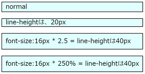 4番目は、250%を指定しています。line-heightは16pxに2.5を掛けて40pxです。