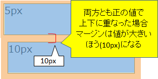 2つのマージンの値が両方とも正の値で上下に重なった場合、値が大きい方のマージンが設定されます。