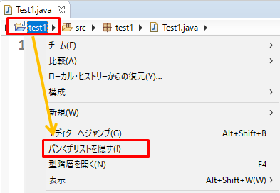 Eclipseのパンくずリストの表示と非表示の方法です。