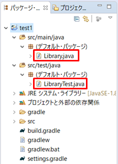 このサンプルでは、Gradleプロジェクトのデフォルトにあるクラスとテストクラスに対して、EclipseのGradleでコンパイル、テスト、jarファイルの作成を行います。