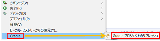 5.プロジェクトを右クリックして「Gradle」→「Gradleプロジェクトのリフレッシュ」をクリックします。jarがダウンロードされます。設定されるまで右下に進捗が表示されます。
