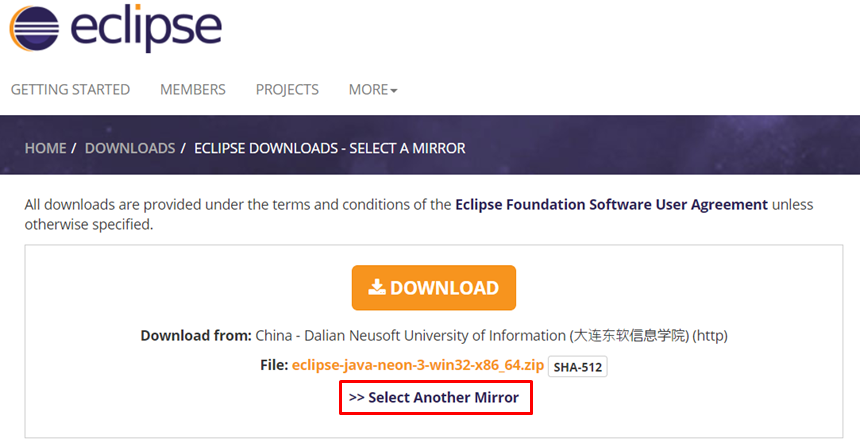 ミラーサイトからダウンロードするため「Select Another Mirror」をクリックします。