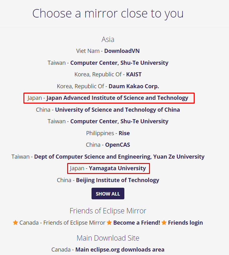 3.日本のミラーサイトをクリックします。クリックするとダウンロードが始まります。