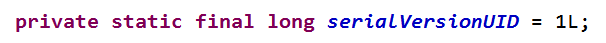 3.「生成シリアルバージョンIDの追加」をクリックすると以下の一文が自動で生成されます。(privateからシリアルバージョンUID(serialVersionUID=XXX;)まで)