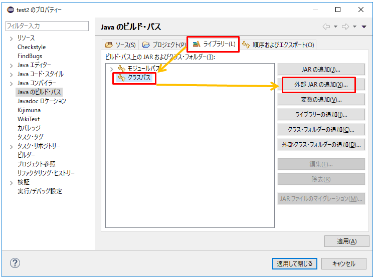 Eclipse 外部jarファイルをクラスパス(ビルドパス)に設定する方法