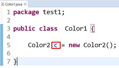 6行目でColor1クラスのインスタンスを生成し、8行目でColor1クラスのメソッドを実行します。