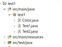 サンプルコードとして3つのクラスがあります。(Color.java,Test1.java,Test2.java)