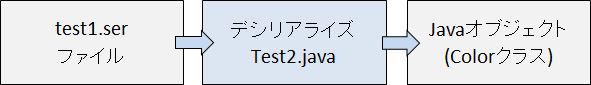 2.serファイルからデシリアライズしてJavaオブジェクトに値をセットする。