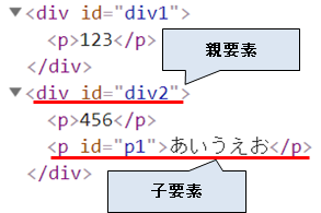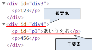 枠線のdiv要素が親でp要素の文字が子要素になっています。