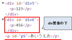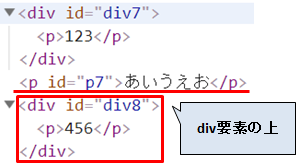25行目は、appendToメソッドで11行目のP要素(456)の下に移動したp要素を6行目のdiv要素の子要素の最後に移動します。