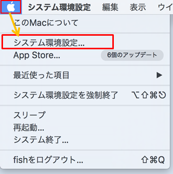 1.画面左上のりんごのマークをクリックし、「システム環境設定」をクリックします。
