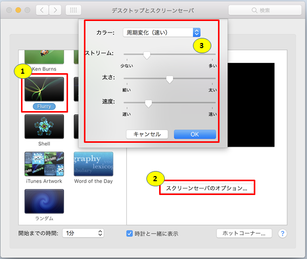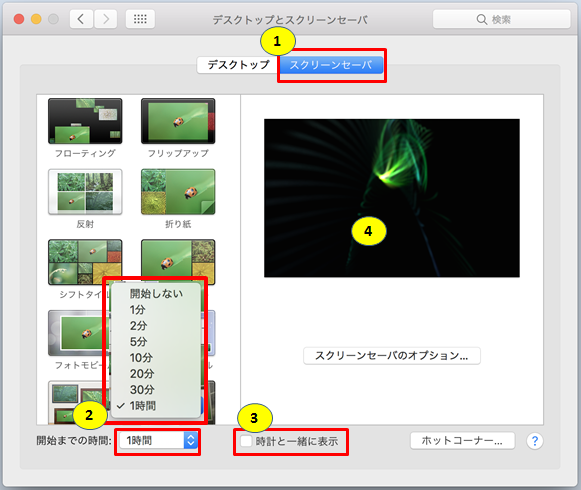 MACのスクリーンセーバの設定方法です。
