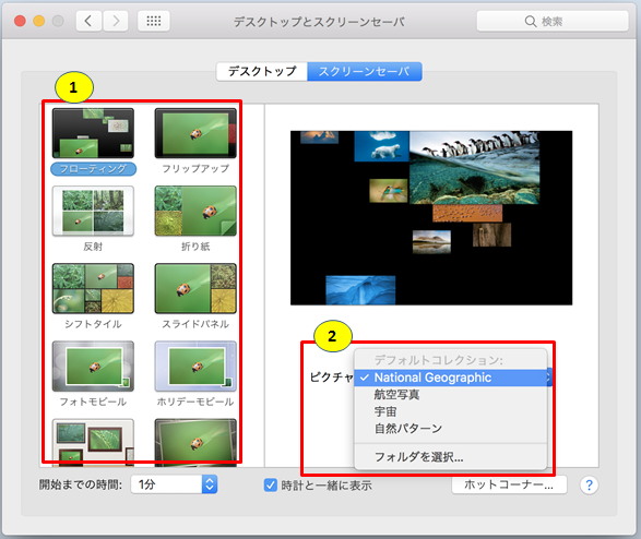 ① スクリーンセーバを選択します。