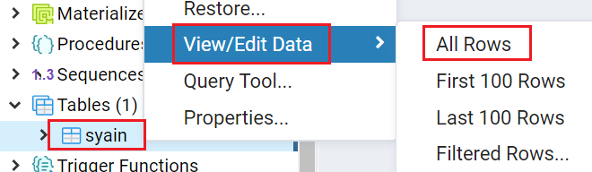 1.テーブルを右クリックし、「View/Edit Data」→「All Rows」をクリックします。
