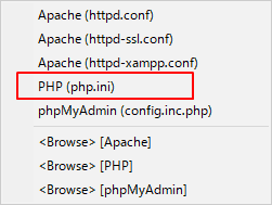 1.XAMPPコントロールパネルのconfigをクリックします。