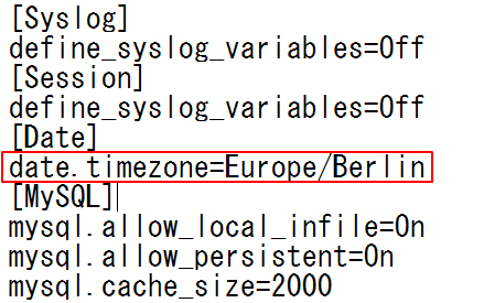 Europe/BerlinをAsia/Tokyoに書き換えます。
