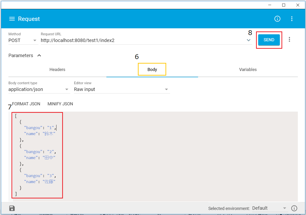 7.送信するJSONをコピペします。