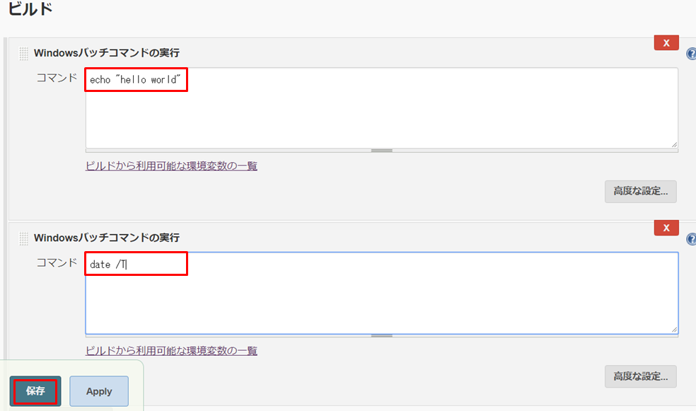 Jenkinsのジョブの作成/変更/削除とバッチコマンドでHello Worldを表示するサンプルです。