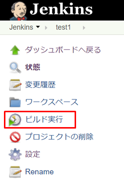 2.ジョブの実行完了後、ビルド履歴に#1が表示されます。赤枠の#1をクリックします。