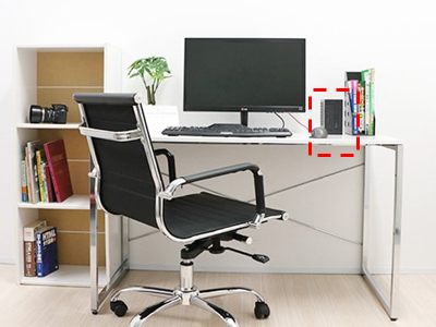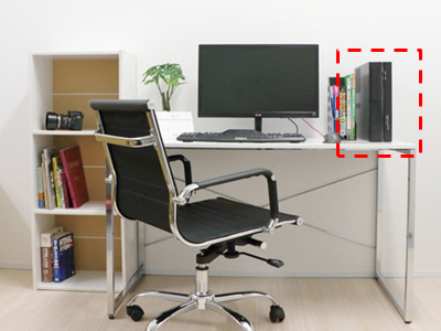 机の右側にのっています。縦置きでも横置きでも可能です。