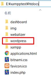 3.解凍したwordpressフォルダを、XAMPPフォルダのhtdocsフォルダ配下に配置します。