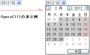 このタイプに対応しているブラウザでは、カレンダーを使って年月を入力することができます。