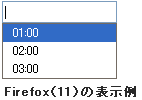 このタイプに対応しているブラウザでは、スピナー(上下ボタン)を使って時間を入力することができます。