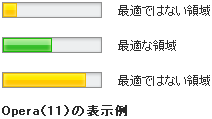 meter要素の内容は、この要素に対応していないブラウザ向けの代替コンテンツになります。