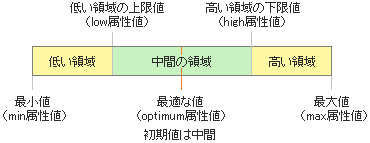 最適な値 | 数値 | この値により最適な領域も設定される (浮動小数点数、初期値は中間点) |