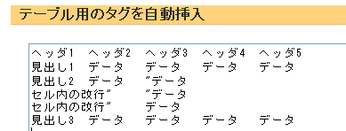 Excelのワークシートで作成したデータを、HTML形式のテーブルに変換するためのフォームです。(必要なタグが自動的に挿入されます)