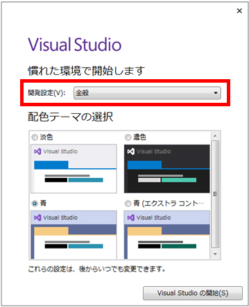 開発設定を選択する画面になる場合は「全般」を選択してください。