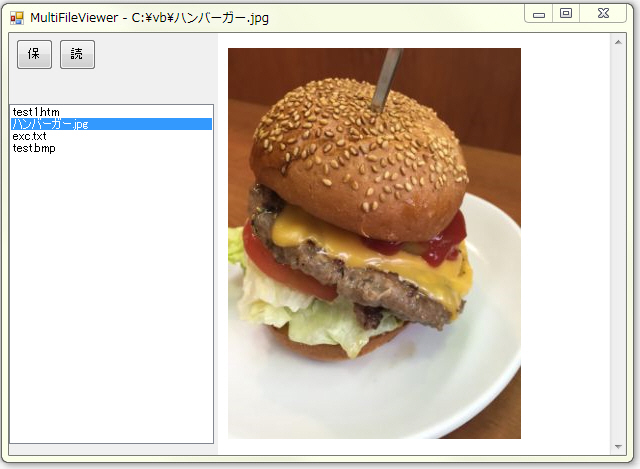 プログラムができたら、実際に実行して確認してみてください。正常に動作する場合は、「読」ボタンをクリックするとファイルを選択する画面が表示され、そこで選択したファイルの内容を読み込んで、ファイル一覧に表示します。