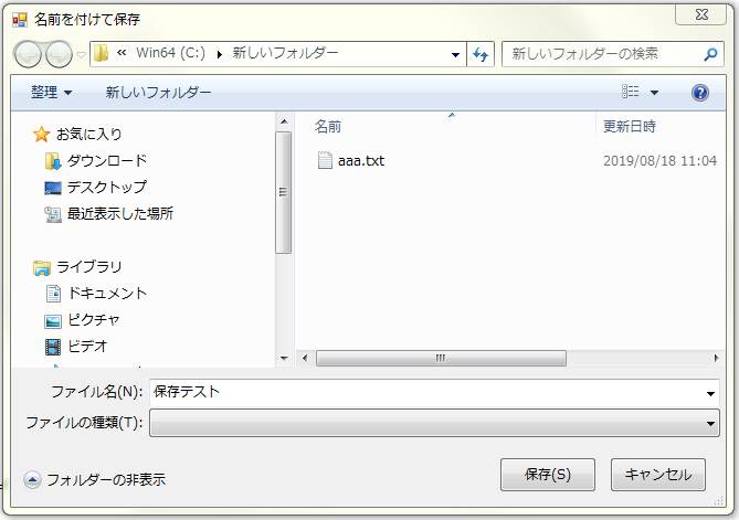 この段階で、このコードがうまく動くかテストしてみてください。正常に動作する場合は、ファイル一覧にいくつかのファイルを追加して、「保」ボタンをクリックすると、ファイル名を選択する画面になります。そこで適当なファイル名を入力し、「保存」をクリックすると、そのファイルにファイル一覧のファイルのフルパスが書き込まれます。