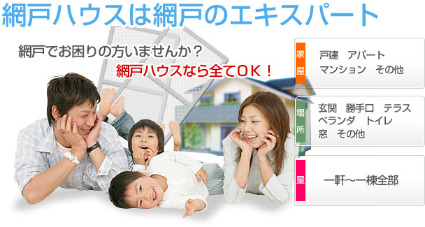 当店はベランダやトイレ、玄関を含む各お部屋の網戸のメンテナンスを行う専門店です。東京都を中心にご用命があれば埼玉や千葉、神奈川にも出張でお伺いしております。通常サイズのものから小や中、特注サイズも承っており、料金もリーズナブルでお客様にご好評をいただいております。また網戸の枚数が多くなるほどお安くなるボリュームディスカウントも実施中です。ご相談は無料なので、何かありましたらお電話でお問い合わせください。また、サッシやガラスのの修理と交換も合わせて受付しております。スピーディーでキレイな、プロフェッショナルの技術であなたのご要望にお応えいたします。