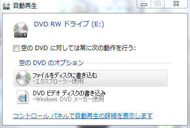 このような表示が自動で出てくるかもしれませんが、こちらからDVDへの書き込みを行わないようにしましょう。↓