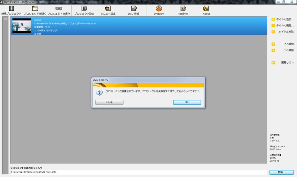 DVDが焼きあがってしまえば、DVD Flickの設定は保存しなくてもいいかとは思います。心配な方はそのたび保存したほうが良いかもしれません。