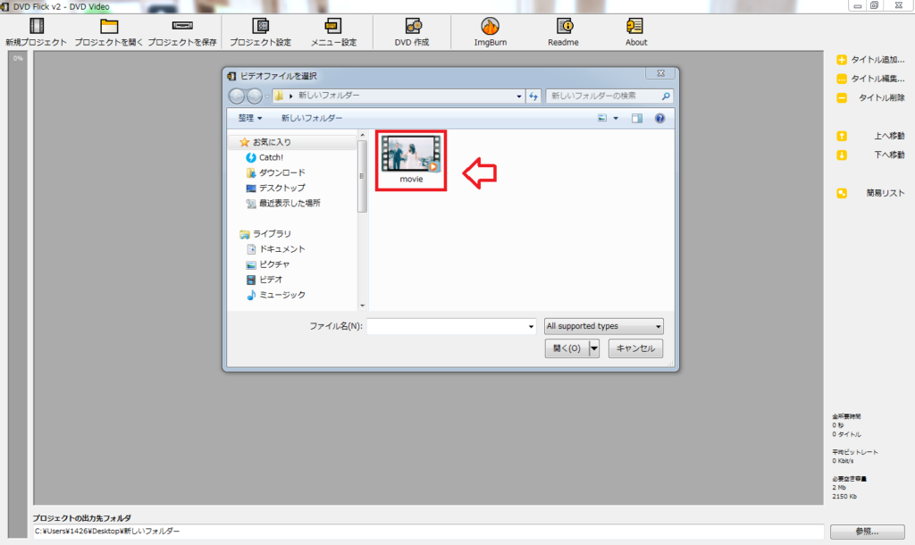 直接データのあるフォルダーから、DVD Flickの操作画面上にドラッグアンドドロップで入れ込むこともできます。