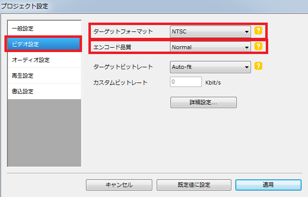 「ターゲットフォーマット」は「NTSC」のままでOK。