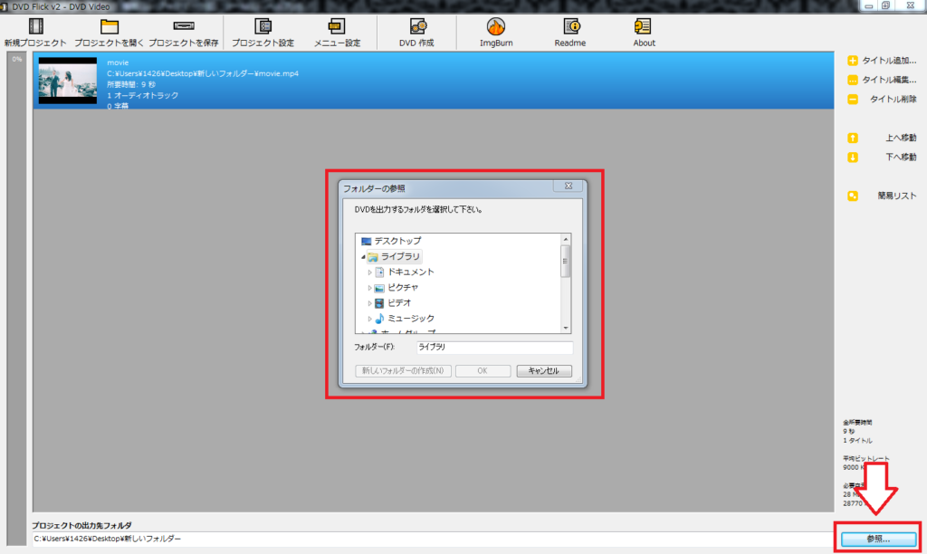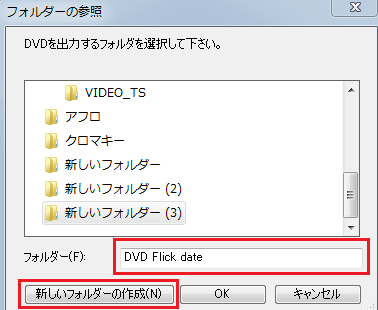 「DVD Flick date」や「DVD」などの、適当なフォルダ名にしておきましょう。