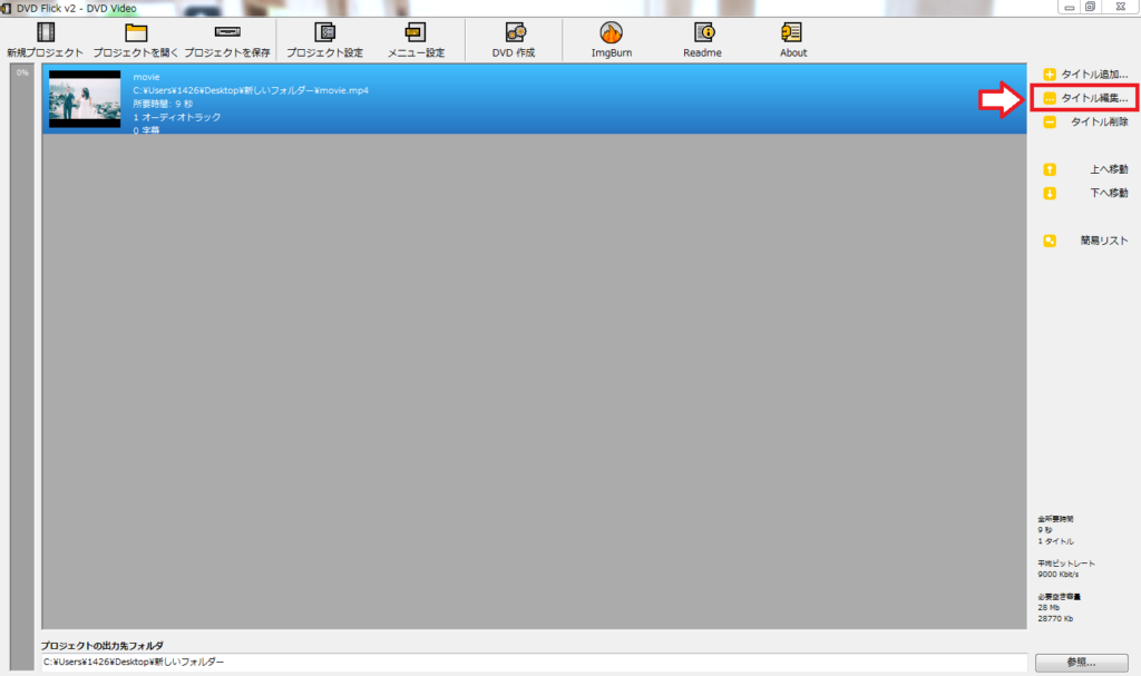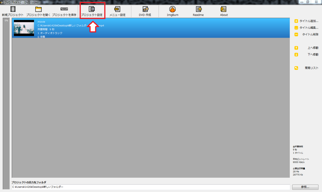 DVD Flickのプロジェクト設定