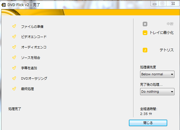 これでDVD FlickとImg Burnを利用したDVDへの書き込みは完了です。