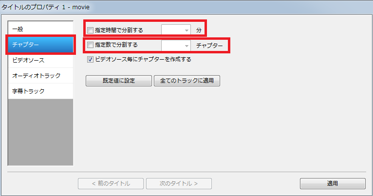 ↓「チャプター」の項目の選択です。わざわざ設定する必要はありません。
