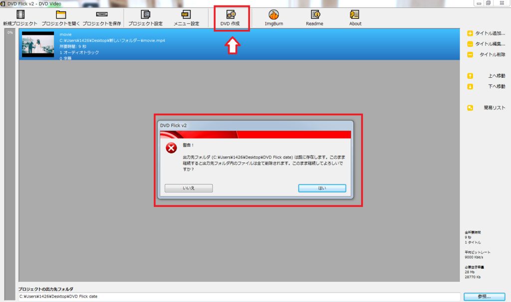 DVDへの書き込みはDVD Flickでデータを変換して、Img Burnで書き込む必要があります。