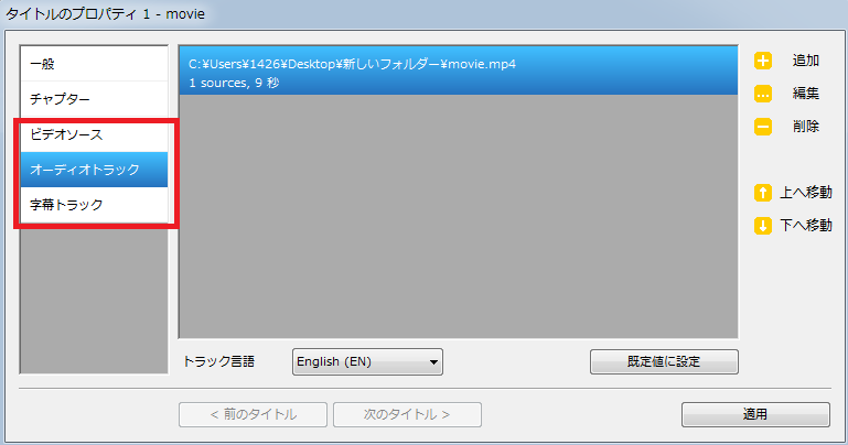 その他の項目「ビデオソース」「オーディオトラック」「字幕トラック」は初期値のままで特に変更しなくても大丈夫です。