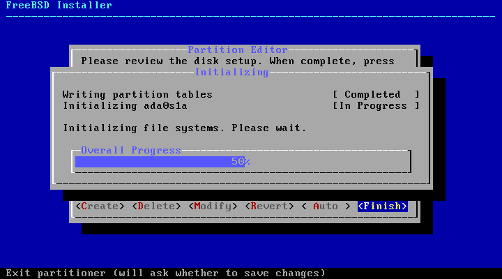 「Auto(UFS)」を選択した場合、実装メモリを判断して適切な swap 領域を作成し、あとは boot パーティションと root パーティションのみの構成となります。 ディスクが十分に早いのであれば、これで十分です。 他の選択をしたいのであれば過去のバージョンのインストール時の設定をご参照ください。 Enter