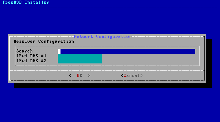 resolv の設定をきいてきます。 わからない場合はそのまま「OK」にカーソルを合わせて Enter