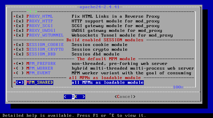 最後のページを少しいじって、MPM の設定を変えてスレッドを動作させるようにするとレスポンスが速くなるらしいのですが、まだ設定してみていません。 今のところチェックはデフォルトのままいじっていません。 確認が終わったら、インストールします。 |