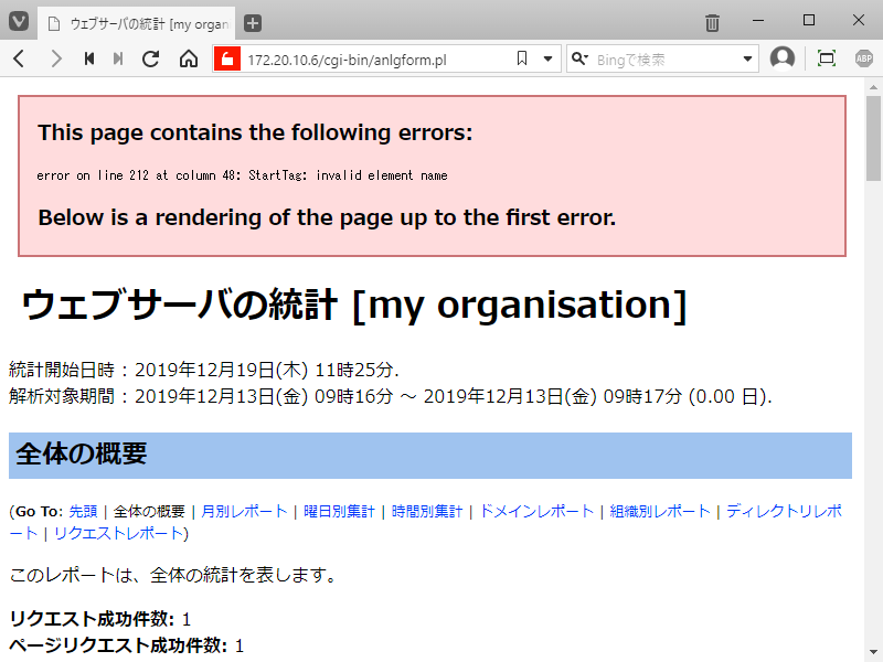 なんか、エラーが出ていますが・・・最近は、後述する「awstats」をメインにしていますので、この際、ほおっておきます。