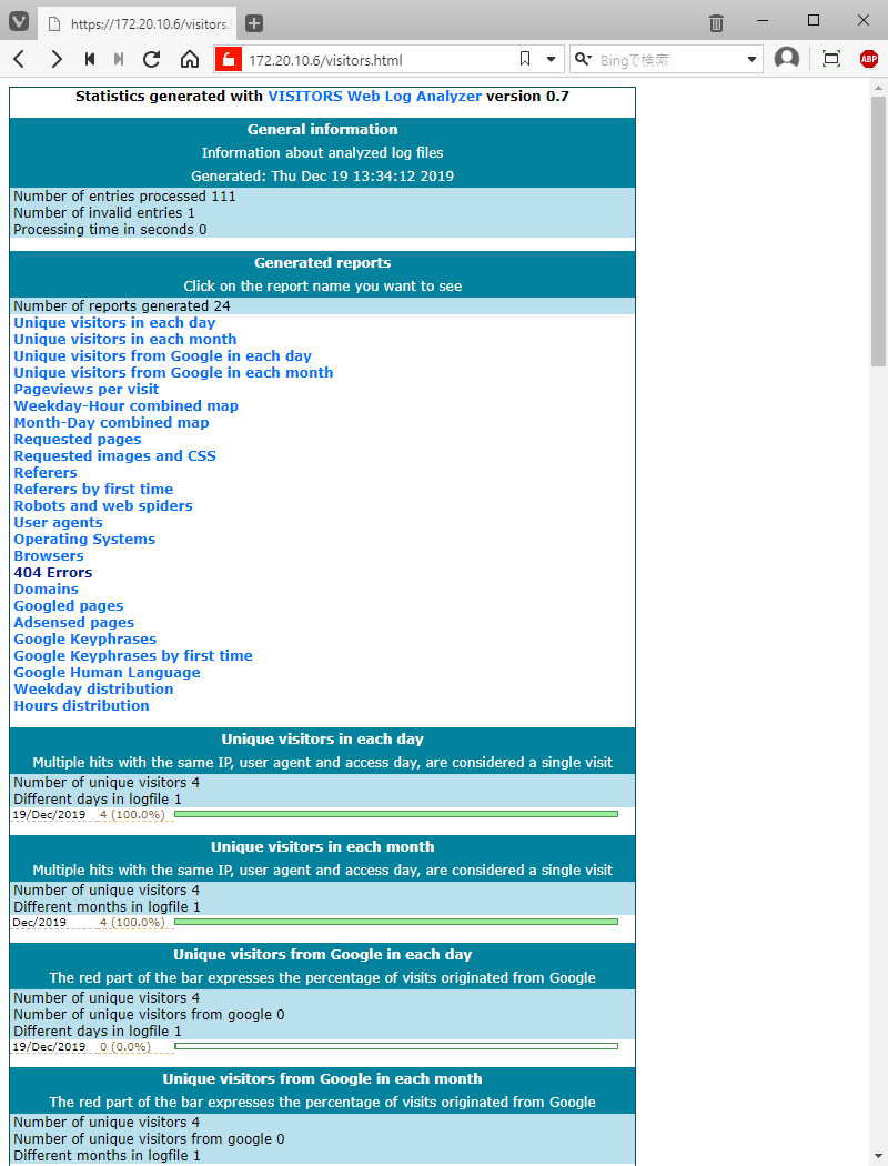 /usr/local/bin/visitors -A ログファイル名 > hogehoge.html