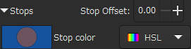 英語環境でInkscapeを実行すると、"色フェーズ" は "Stops"、"終端オフセット" は "Stop Offset"、"終端色" は "Stop color" と表記されます(右図)。 つまり、"Stop(s)" という表現で統一されています。 しかし、日本語環境では、表現が統一されていません。 そのため紛らわしいのですが、『色フェーズ』と『終端』は同じものです。